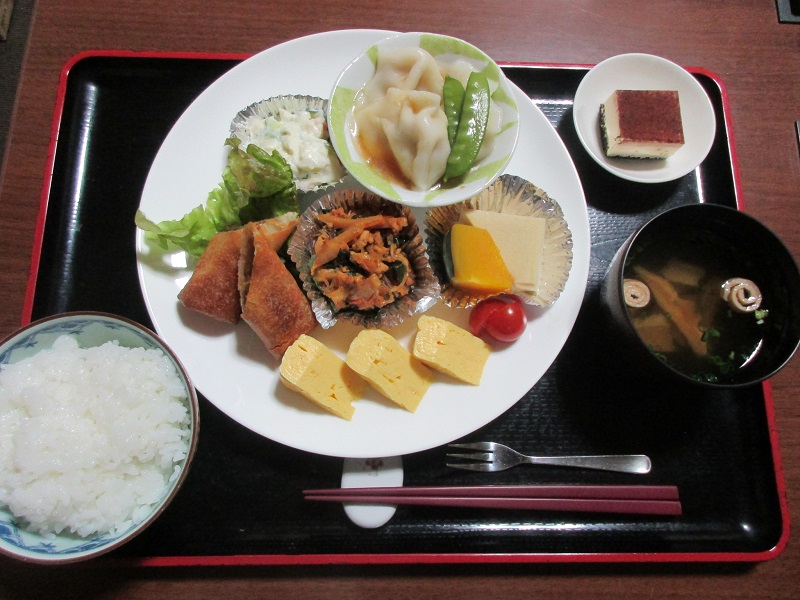 本日のご夕食は、水餃子、春巻、麻婆春雨等、中華料理がメインの